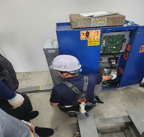 주요항목으로는 손끼임방지장치 , 승강장문 이탈방지장치 , 비상가이드 , 카 상승과속 및 개문출발 방지장치 , 브레이크시스템 ,자동구출운전수단 등이 있습니다.